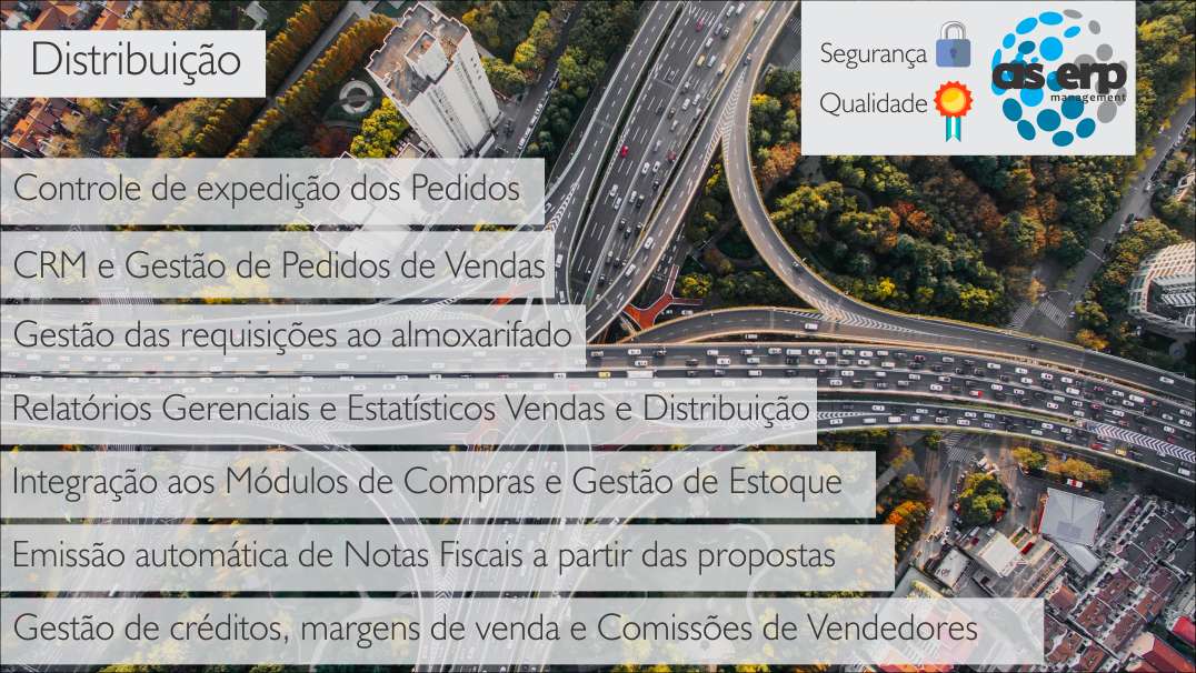 É possível realizar a gestão de créditos, margens de venda e Comissões de Vendedores, além da gestão das requisições ao almoxarifado. Com o ERP em nuvem da CIS-ERP, o módulo de gestão da distribuição possui Integração aos módulos de Compras e Gestão de Estoque. A CIS-ERP disponibiliza diversos relatórios gerenciais e estatísticos em seus módulos, a fim de assistir o gestor nas tomadas de decisão, nesse módulo são assegurados relatórios gerenciais e estatísticos referentes a Vendas e Distribuição.