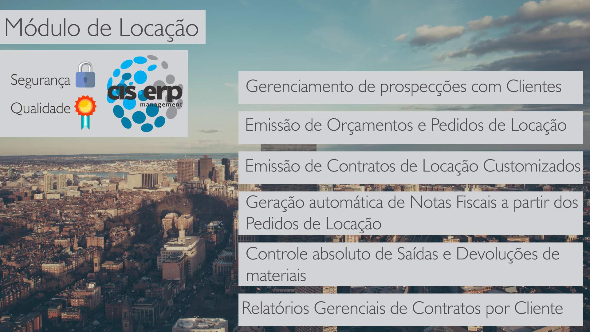 O ERP de 3ª geração da CIS-ERP possui um módulo específico para locação de produtos e serviços.